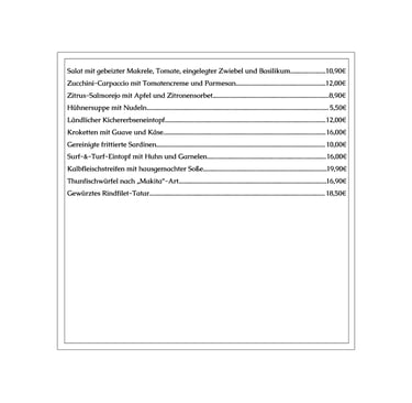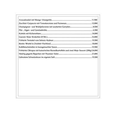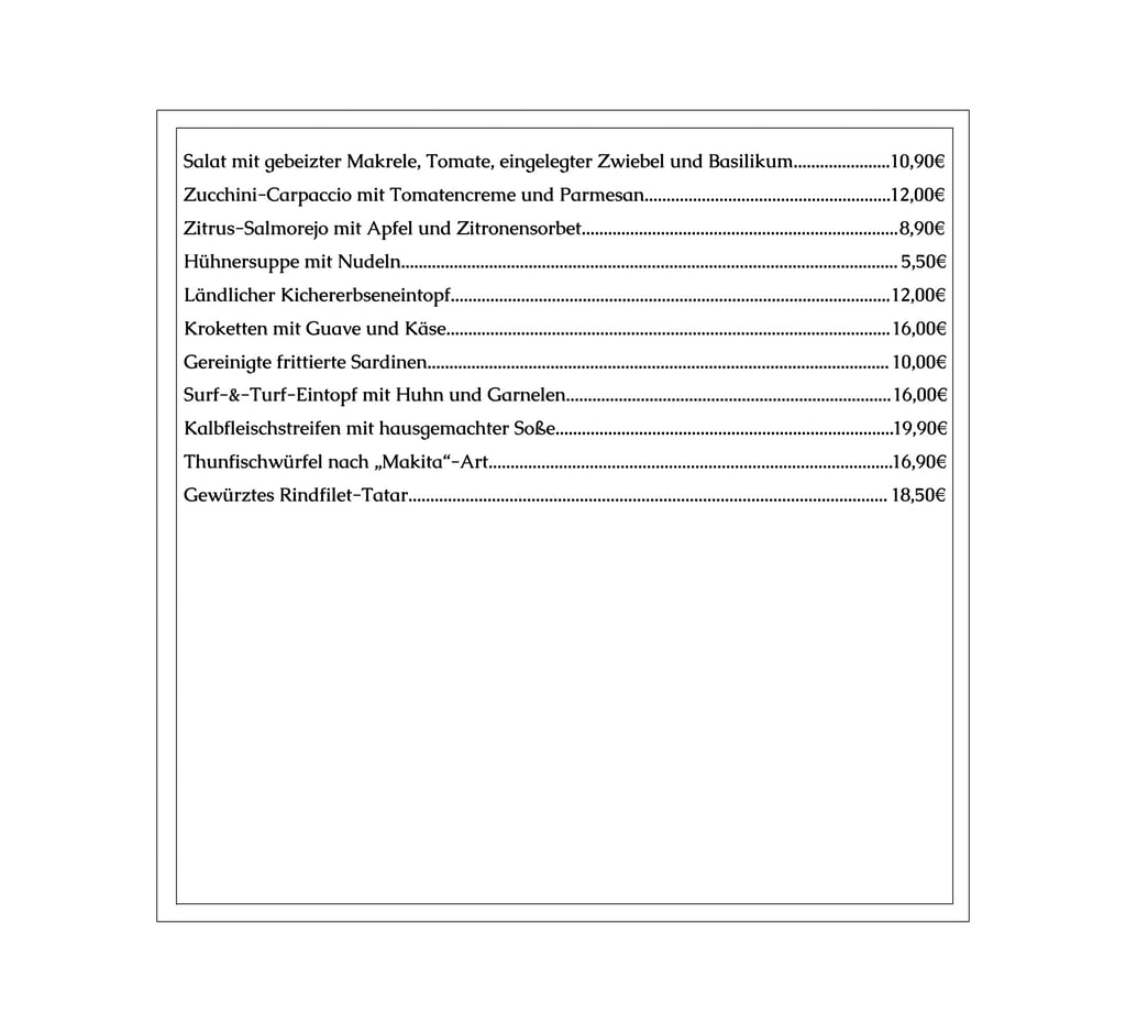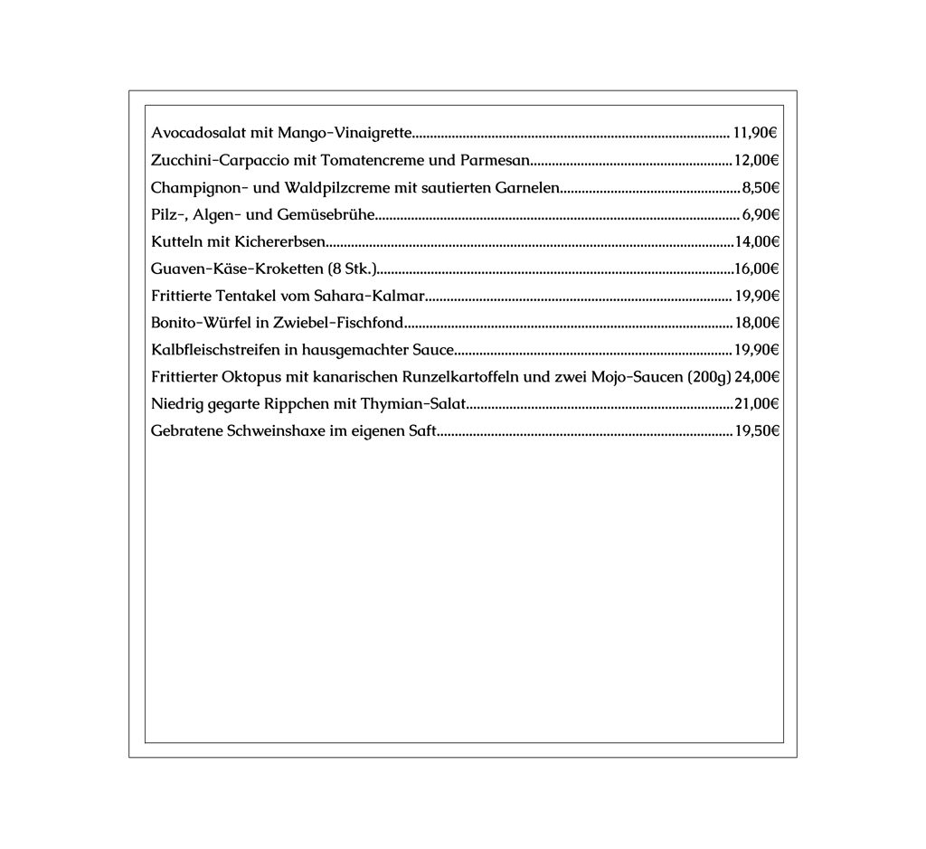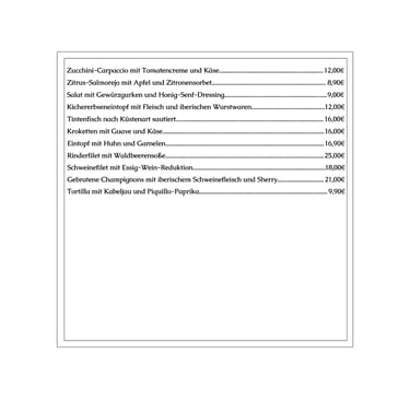 Bei unseren Vorschlägen handelt es sich um Gerichte, die nicht auf der Speisekarte stehen und je nach Saison variieren.