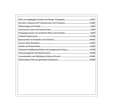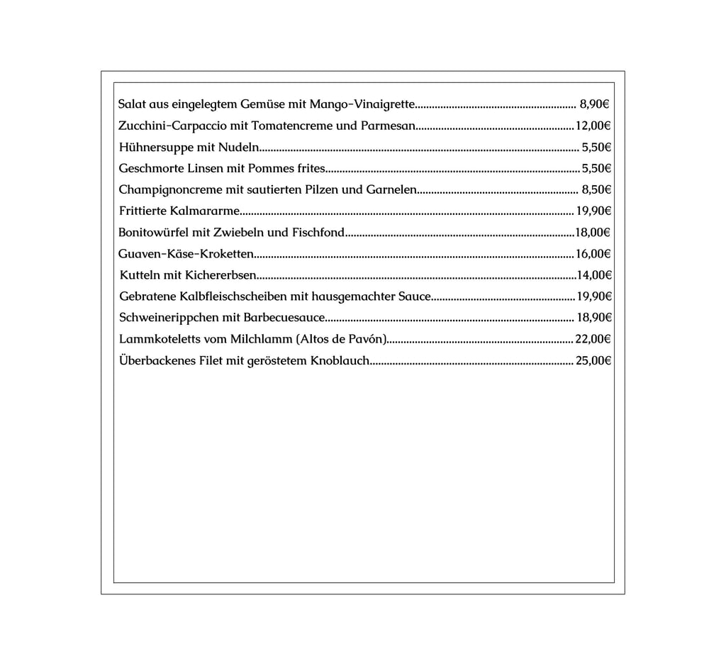 Bei unseren Vorschlägen handelt es sich um Gerichte, die nicht auf der Speisekarte stehen und je nach Saison variieren.