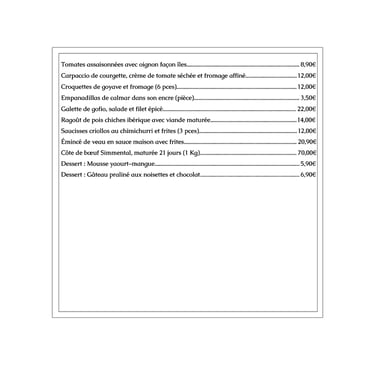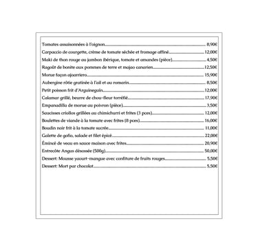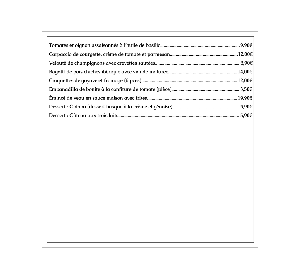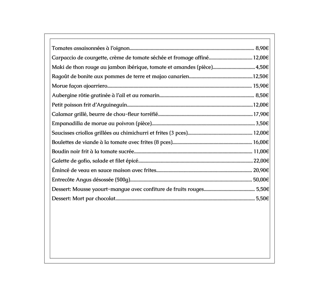 Nos suggestions sont des plats hors carte qui varient en fonction des produits de saison, alors profitez-en pour les commander pendant qu'ils sont encore disponibles.